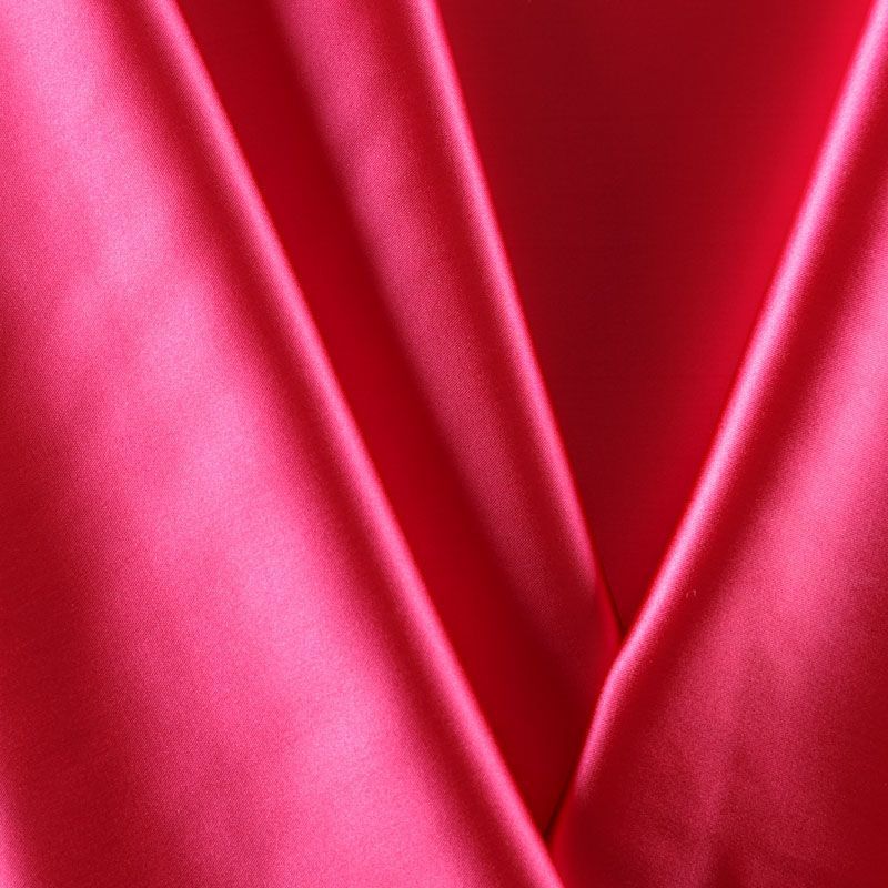 Итальянский костюмно-плательный атлас ватуссо яркого малонового оттенка. Ткань плотная, но пластичная, хорошо держит форму и отлично тянется, собирается в красивые складки и драпировки. Почти не мнется, очень удобный и практичный. Блеск умеренный, смотрится дорого, благородно. Подойдет для пошива прямых силуэтов-футляров, приталенных платьев с пышной юбкой и крупными драпировками, изделий с заложенными складками, нарядных изделий, вечерних костюмов, летнего пальто, юбки, для изготовления корсетов.