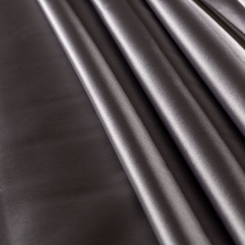 Итальянский костюмно-плательный атлас ватуссо серо-стального оттенка. Ткань плотная, но пластичная, хорошо держит форму и отлично тянется, собирается в красивые складки и драпировки. Почти не мнется, очень удобный и практичный. Блеск умеренный, смотрится дорого, благородно. Подойдет для пошива прямых силуэтов-футляров, приталенных платьев с пышной юбкой и крупными драпировками, изделий с заложенными складками, нарядных изделий, вечерних костюмов, летнего пальто, юбки, для изготовления корсетов.
