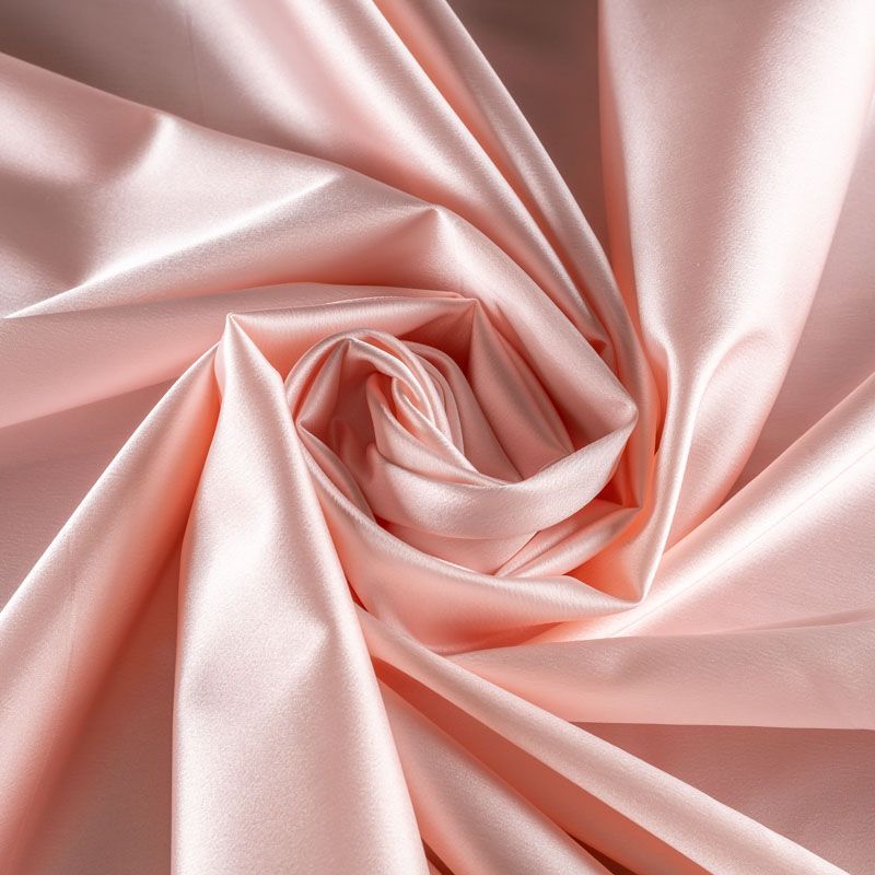 Итальянский костюмно-плательный атлас ватуссо нежного розового оттенка. Ткань плотная, но пластичная, хорошо держит форму и отлично тянется, собирается в красивые складки и драпировки. Почти не мнется, очень удобный и практичный. Блеск умеренный, смотрится дорого, благородно. Подойдет для пошива прямых силуэтов-футляров, приталенных платьев с пышной юбкой и крупными драпировками, изделий с заложенными складками, нарядных изделий, вечерних костюмов, летнего пальто, юбки, для изготовления корсетов.