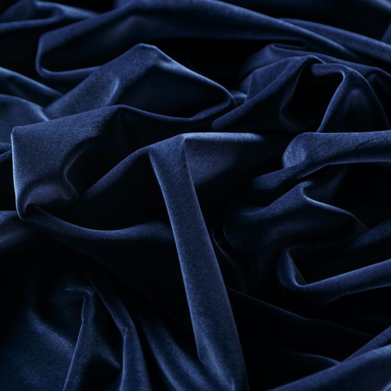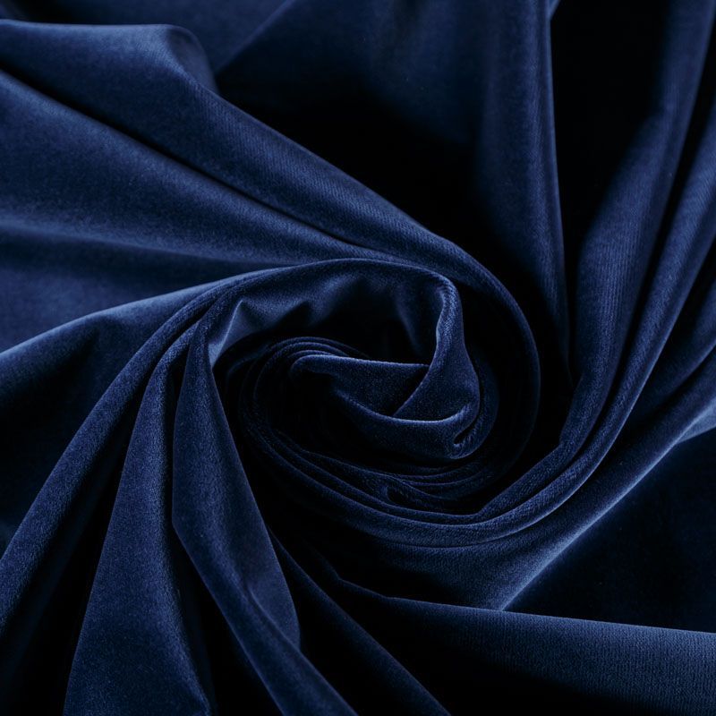 Хлопковый итальянский бархат темно-синего цвета. Ткань плотная, мягкая с коротким ворсом. Не грубая, хорошо драпируется. Имеет благородный матовый оттенок. Подойдет для пошива нарядного костюма, жакета, юбки, жилета, шорт, комбинезонов, брюк, платья-футляр, легкого пальто или бомбера.