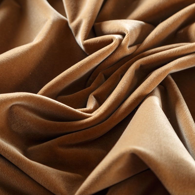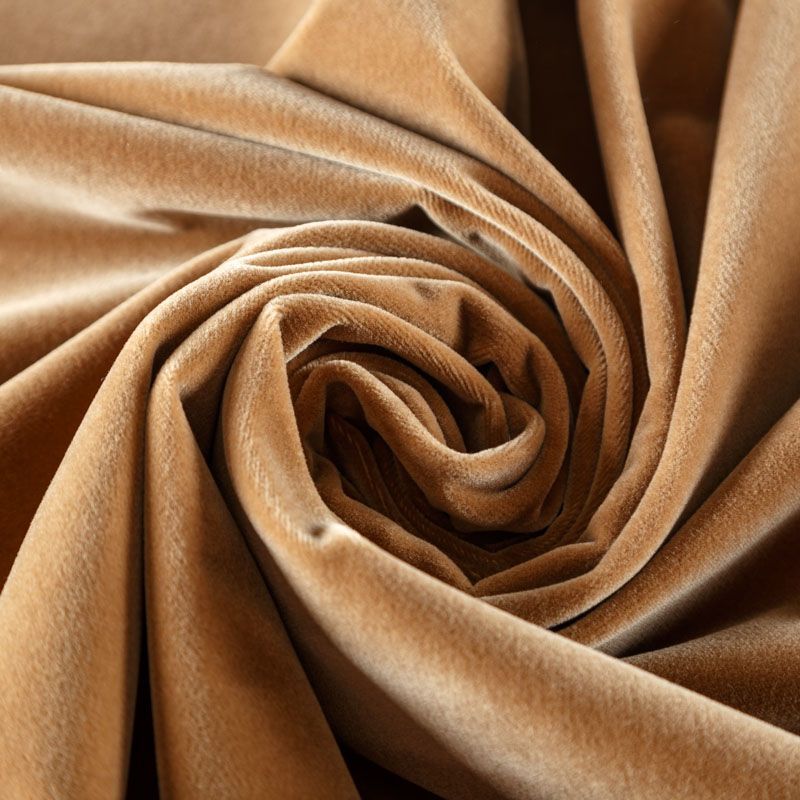 Хлопковый итальянский бархат карамельного оттенка. Ткань плотная, мягкая с коротким ворсом. Не грубая, хорошо драпируется. Имеет благородный матовый оттенок. Подойдет для пошива нарядного костюма, жакета, юбки, жилета, шорт, комбинезонов, брюк, платья-футляр, легкого пальто или бомбера.