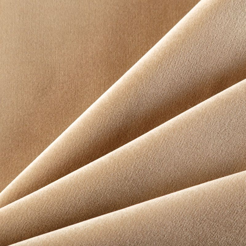 Хлопковый итальянский бархат бежевого оттенка. Ткань плотная, мягкая с коротким ворсом. Не грубая, хорошо драпируется. Имеет благородный матовый оттенок. Подойдет для пошива нарядного костюма, жакета, юбки, жилета, шорт, комбинезонов, брюк, платья-футляр, легкого пальто или бомбера.
