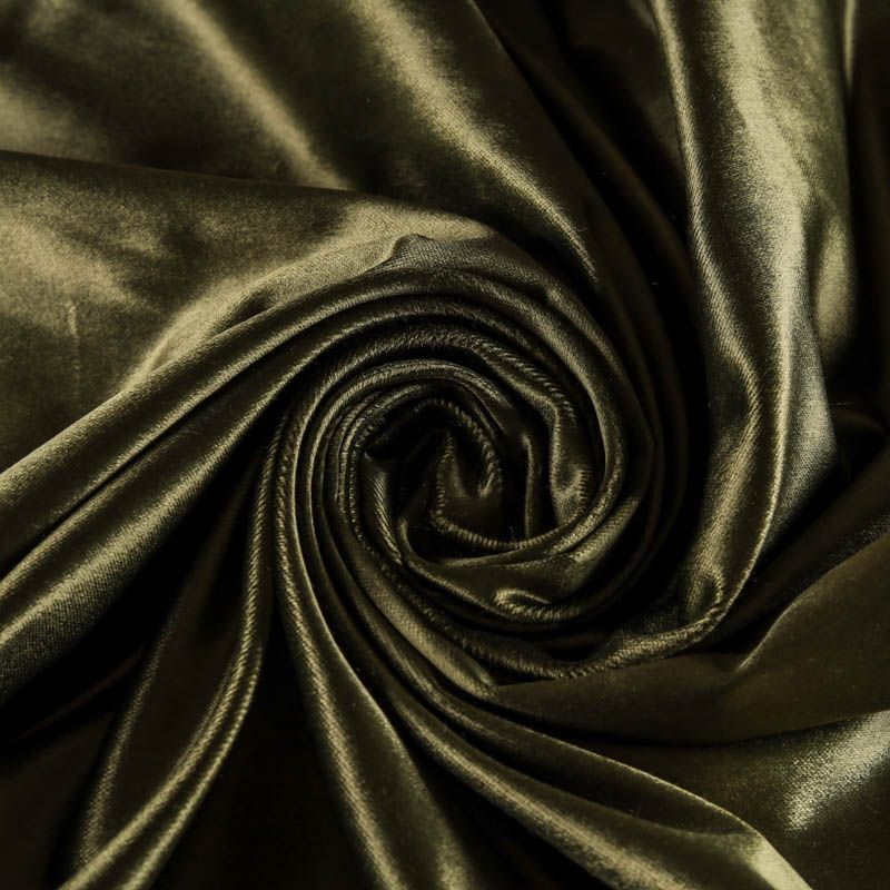 Плотный хлопковый итальянский бархат оттенка хаки со сдержанным глянцем на поверхности. Ткань очень приятная на ощупь, гладкая шлифованная поверхность, хорошо держит форму. Идеальный вариант для нарядного костюма, жакета, легкого пальто, юбки, жилета, брюк, платья-футляра.