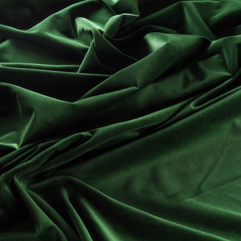 Плотный итальянский бархат из хлопка сочного зеленого цвета с добавлением эластана. Ткань очень приятная на ощупь, пластичная, поверхность матовая, держит форму, прочная, износостойкая. Идеально подойдет для костюма, жакета, юбки, жилета, комбинезона, брюк, платья-футляра.