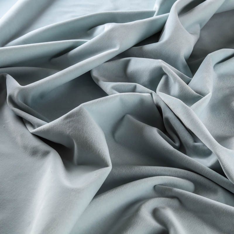 Плотный итальянский бархат из хлопка нежного светлого мятного оттенка с добавлением эластана. Ткань очень приятная на ощупь, пластичная, поверхность матовая, держит форму, прочная, износостойкая.  Идеально подойдет для костюма, жакета, юбки, жилета, комбинезона, брюк, платья-футляра.
