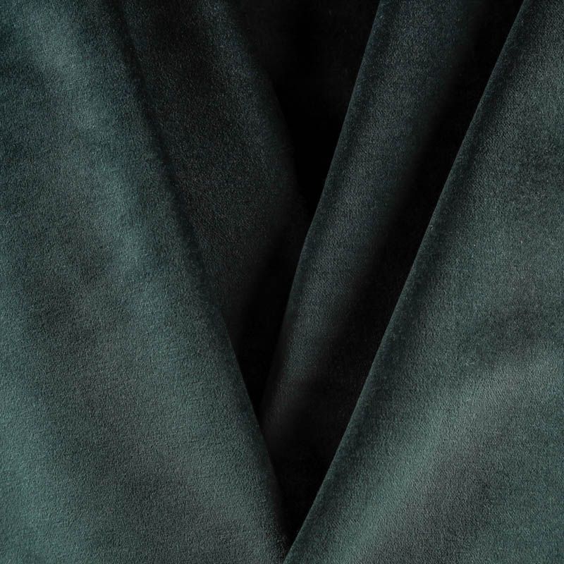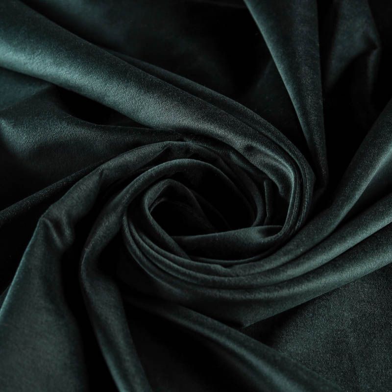 Хлопковый итальянский бархат глубокого зеленого цвета сосновой хвои. Ткань плотная, мягкая с коротким ворсом. Не грубая, хорошо драпируется. Имеет благородный матовый оттенок. Подойдет для пошива нарядного костюма, жакета, юбки, жилета, шорт, комбинезонов, брюк, платья-футляр, легкого пальто или бомбера.
