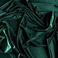 Бархат с выработкой в рубчик, как на вельвете глубокого изумрудного цвета с люрексовой нитью. Ткань очень приятна на ощупь, не мнется, мягкая, нежная, хорошо тянется и драпируется. Цвет играет отблесками и полутонами. Бархат идеально подходит для пошива вечерних платьев, юбок, костюмов, а также стильных аксессуаров.
