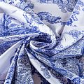 Итальянский хлопковый батист белого цвета с принтом, навеянным атмосферой тропического леса, индийской природы и культуры. Ткань очень легкая, прозрачная, приятная на ощупь, нежная, пластичная, хорошо и мягко драпируется, летящая. Батист подойдёт для модных блуз с объёмными рукавами, летних платьев и сарафанов с длинной летящей юбкой, прозрачных рубашек, декорированных объёмными бантами, туник и топов.