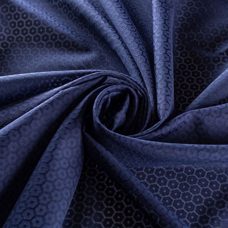 Оригинальный итальянский батист с эффектом деворе на темно-синем фоне. Деворе - это особая вытравка, благодаря которой на ткани появляются полупрозрачные элементы. Ткань очень легкая, прозрачная, приятная на ощупь, нежная, пластичная, хорошо и мягко драпируется, летящая. Батист подойдёт для модных блуз с объёмными рукавами, летних платьев и сарафанов с длинной летящей юбкой, прозрачных рубашек, декорированных объёмными бантами, туник и топов.