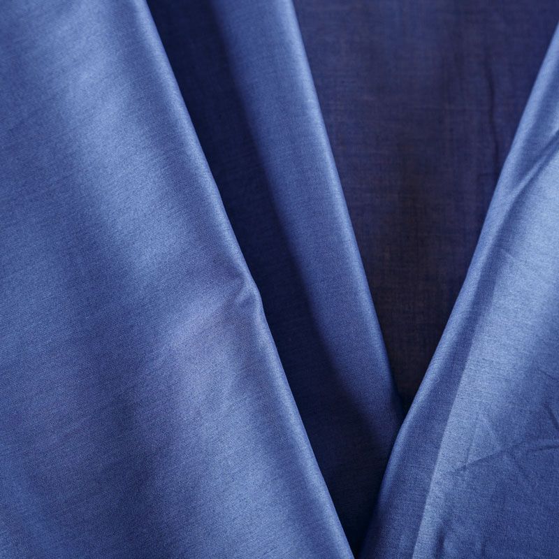 Итальянский хлопковый батист в синем оттенке, тонкий, легкий, полупрозрачный, приятный на ощупь, нежный, хорошо и мягко драпируется, летящий. Батист подойдёт для модных блуз с объёмными рукавами, летних платьев и сарафанов с длинной летящей юбкой, прозрачных рубашек, декорированных объёмными бантами, детской одежды.