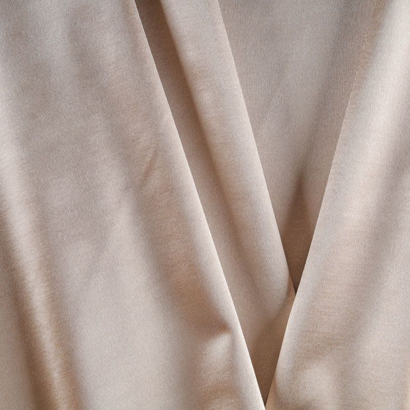 Лицевая сторона ткани с выраженным блеском, очень приятная на ощупь, "скользкая", как шелк. Ткань плотная, отлично тянется, одежда из него не сковывает движения. Хорошо впитывает влагу и быстро высыхает, не вызывет аллергии и раздражения. Подойдет для пошива купальников, парео, пляжных и коктейльных платьев, леггинсов и лосин, костюмов фигуристов, танцоров, гимнастов.