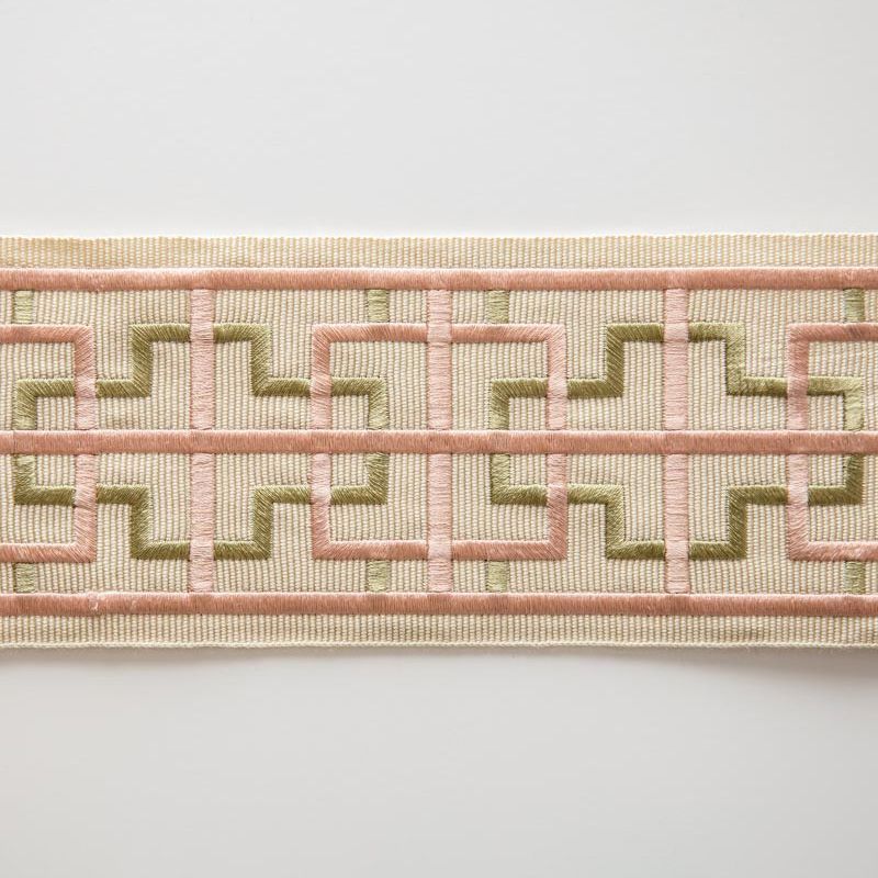 Бордюр жаккардовый 7 см 0000-357-104-012 молочным с зелено-розовым