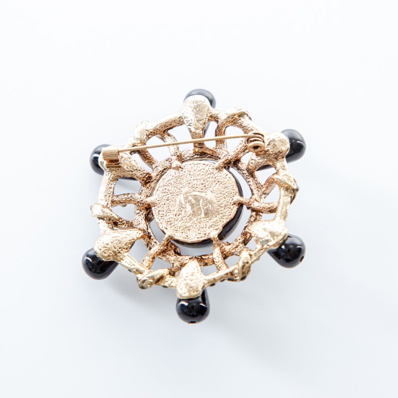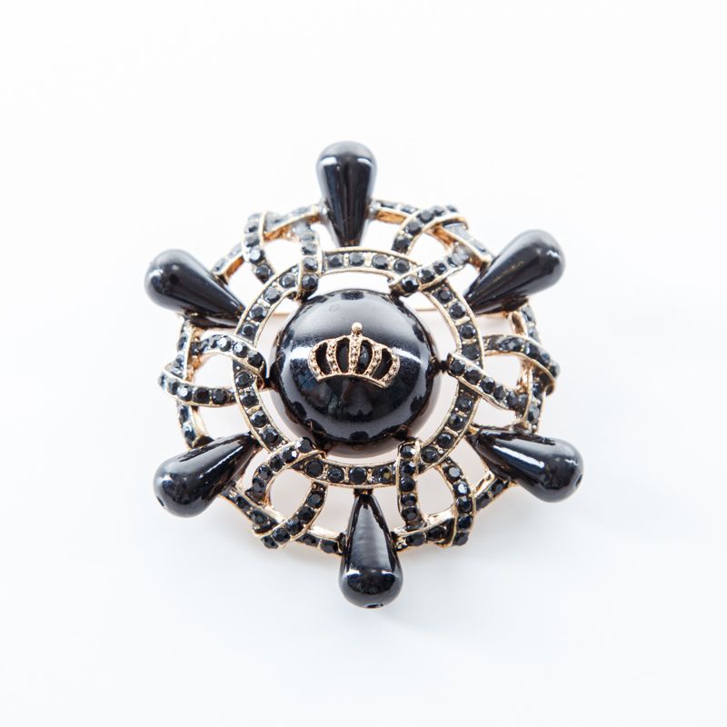 Брошь декоративная d60 мм стразы ACS0479 золотой/черный в Норильске