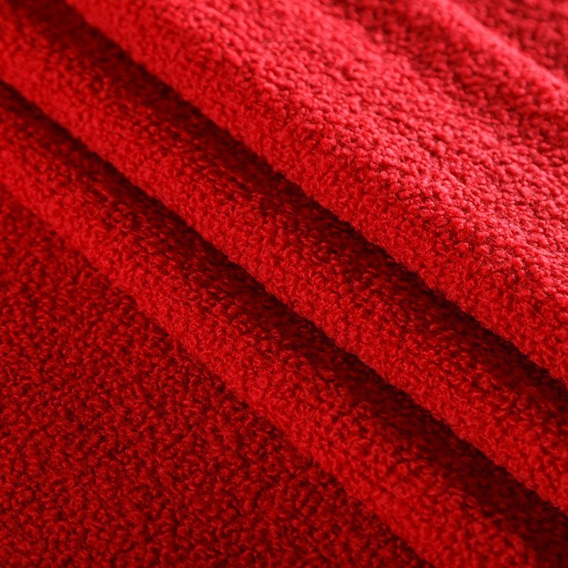 Итальянское шерстяное букле насыщенного красного оттенка. Ткань очень мягкая, достаточно плотная, на вид объемная, хорошо держит тепло. Красивая фактура из кудрявого ворса эффектно будет смотреться в таких изделиях как пальто на осень, жакет, жилет, бомбер, куртка-рубашка.