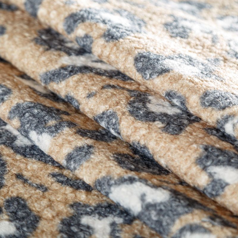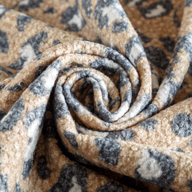 Мягкая, уютная и теплая ткань с буклированной поверхностью бежевого оттенка со стиллизованным анаималистическим принтом. Хорошо держит форму, пластичная, плотная. Не мнется, отлично драпируется, устойчива к деформации. Отлично подойдет на пальто, кардиган, пончо, бомбер, теплый костюм и другие виды верхней одежды.