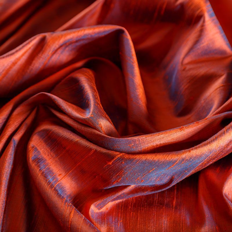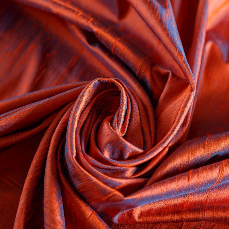 Фактурный натуральный дикий шелк из волокна высшего сорта является самым натуральным из всех видов шелка. Ткань приятна на ощупь, комфортна при носке, гигиенична и долговечна. Дикий шелк прекрасно держит форму, драпируется и подходит как для пошива блузы, топа, жакетов, платьев, юбок, плащей и тренчей, так и для дизайна интерьеров пошива штор, покрывал, подушек и обивки мебели.