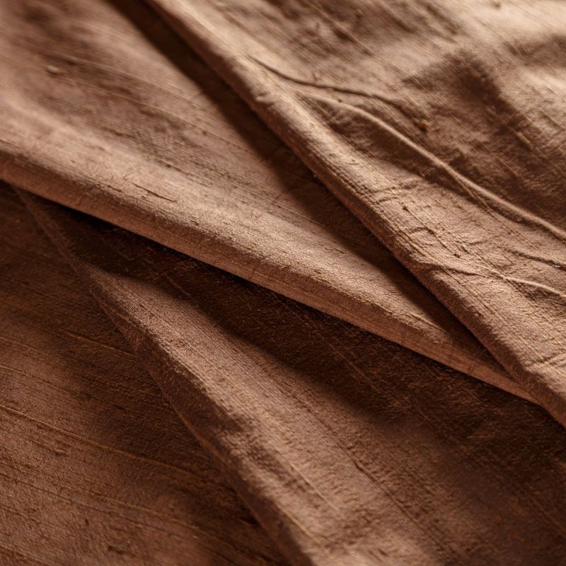 Фактурный натуральный дикий шелк из волокна высшего сорта является самым натуральным из всех видов шелка. Ткань приятна на ощупь, комфортна при носке, гигиенична и долговечна. Дикий шелк прекрасно держит форму, драпируется и подходит как для пошива блузы, топа, жакетов, платьев, юбок, плащей и тренчей, так и для дизайна интерьеров пошива штор, покрывал, подушек и обивки мебели.