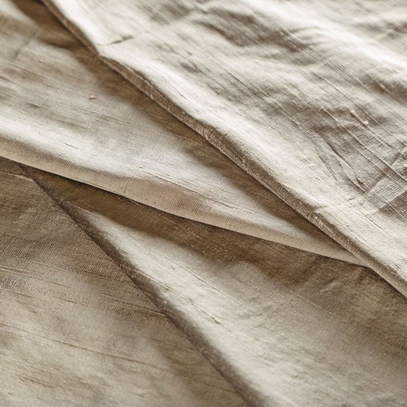 Фактурный натуральный дикий шелк из волокна высшего сорта является самым натуральным из всех видов шелка. Ткань приятна на ощупь, комфортна при носке, гигиенична и долговечна. Дикий шелк прекрасно держит форму, драпируется и подходит как для пошива блузы, топа, жакетов, платьев, юбок, плащей и тренчей, так и для дизайна интерьеров пошива штор, покрывал, подушек и обивки мебели.