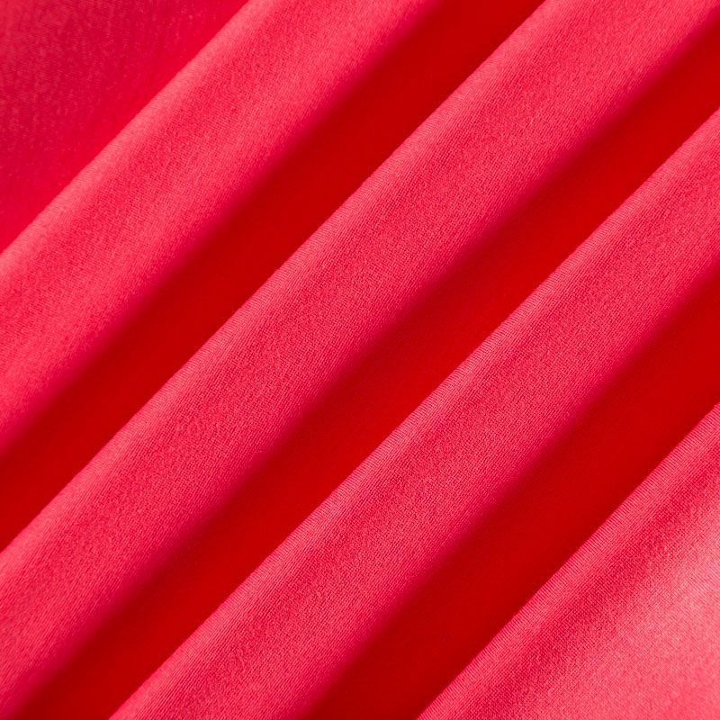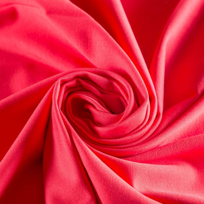Плотное трикотажное полотно. Обе стороны ткани ровные, гладкие. Материал эластичный, имеет растяжимость по всем сторонам, хорошо держит форму, уютный, приятный к телу и удобный в носке. Применяется в пошиве платьев, юбок, костюмов, жакетов.