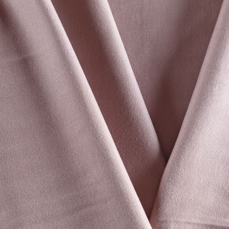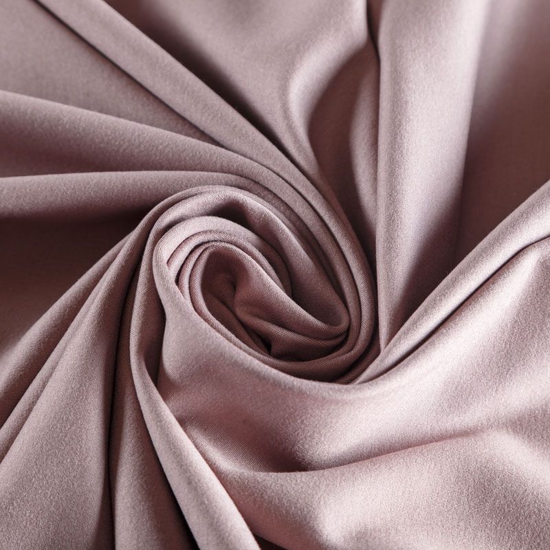 Трикотажное полотно средней плотности. Обе стороны ткани ровные, гладкие. Материал эластичный, имеет растяжимость по всем сторонам, держит форму, уютный, приятный к телу и удобный в носке. Применяется в пошиве платьев, юбок, костюмов, жакетов.