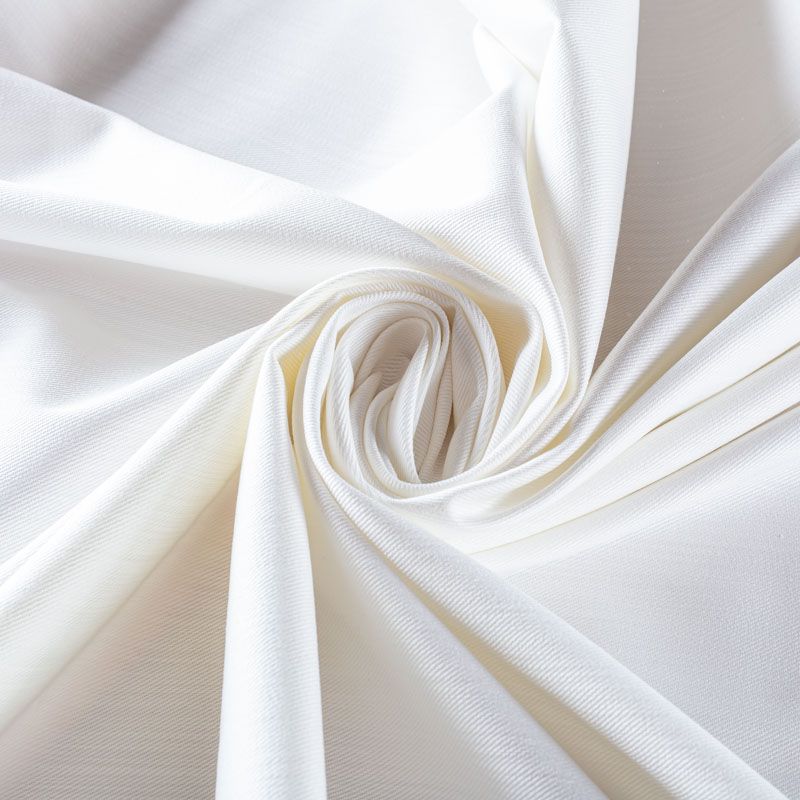 Поверхность ткани матовая, фактурная в диагональный рубчик. Материал имеет высокую плотность, при небольшой толщине, мягкий и приятный на ощупь, немного тянется за счет эластана в составе, обладает устойчивостью к истиранию и механическим повреждениям. Подойдет для пошива рубашек, сарафанов, платьев, юбок, шорт, брюк-джоггеров, лёгких курток и жакетов.