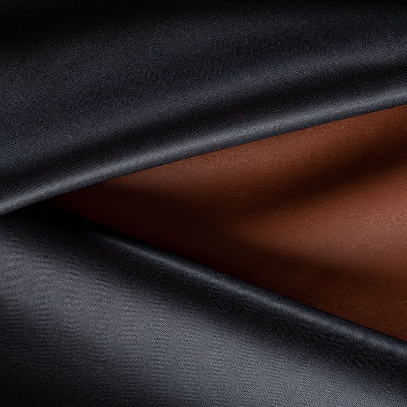 Искусственный материал, имитирующий натуральную кожу, на трикотажной основе. Изнаночная сторона - черного цвета. Экокожа тоньше натуральной, не мнется, пластична, тянется, хорошо облегает фигуру. Подойдет для пошива куртки, костюма, платья, юбки, брюк, шорт, комбинезона, сумки, рюкзака.
