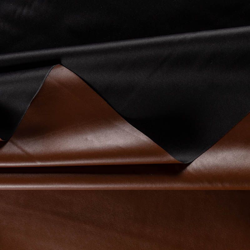 Искусственный материал, имитирующий натуральную кожу, на трикотажной основе. Изнаночная сторона - белая. Экокожа тоньше натуральной, не мнется, пластична, хорошо облегает фигуру. Подойдет для пошива куртки, костюма, платья, юбки, брюк, шорт, комбинезона, сумки, рюкзака.