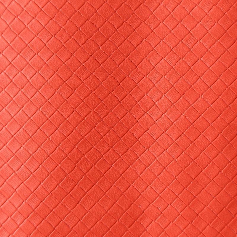Экокожа в красном оттенке с объемной фактурой, имитирующей плетенку. Очень приятная на ощупь, пластичная. Подойдет для пошива платья, брюк, шорт, юбки, куртки, плаща, пальто-рубашки, а также сумки, рюкзака и других аксессуаров.