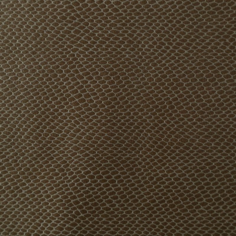 Искусственный материал, имитирующий рисунок змеиной кожи оливково-зеленого оттенка на лицевой стороне и замши на изнаночной. Приятная и мягкая на ощупь, тянется за счет эластана в составе, не просвечивает, пластичная, хорошо драпируется. Подойдет для пошива куртки, костюма, платья, юбки, брюк, шорт, комбинезона, сумки, рюкзака.