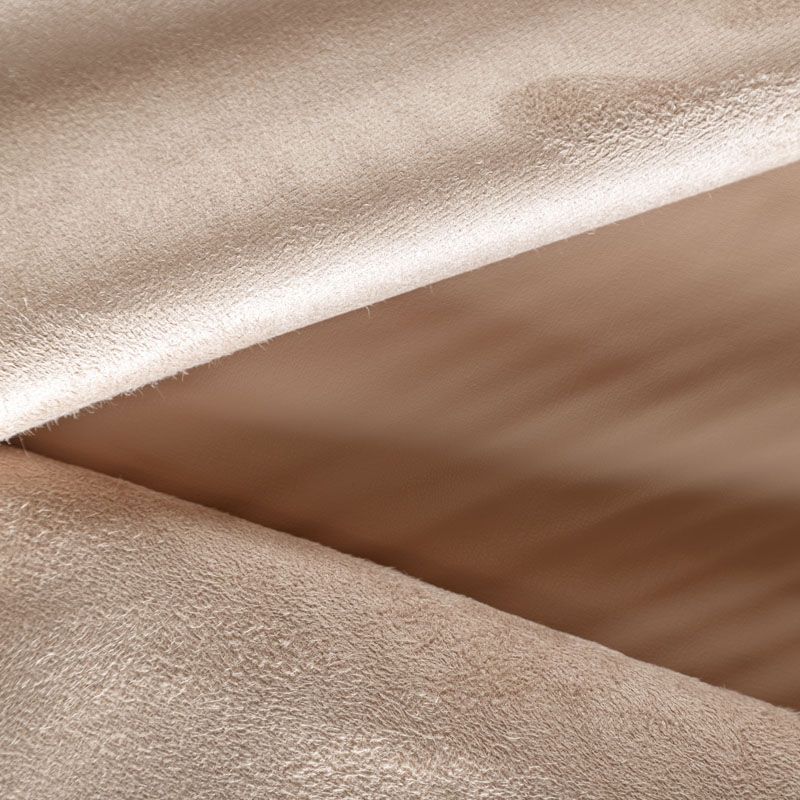 Искусственный материал, имитирующий натуральную кожу бежевого оттенка. Поверхность ткани матовая, гладкая, изнаночная сторона с имитацией светлой замши. Приятная на ощупь, тянется, не просвечивает, пластичная. Подойдет для пошива куртки, костюма, платья, юбки, брюк, шорт, комбинезона, сумки, рюкзака.