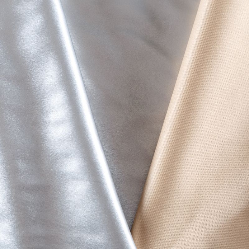 Искусственный материал, имитирующий натуральную кожу, на светлой трикотажной основе. Экокожа тоньше натуральной, не мнется, пластична, хорошо тянется за счет эластана в составе, облегает фигуру. Подойдет для пошива куртки, костюма, платья, юбки, брюк, шорт, комбинезона, сумки, рюкзака.
