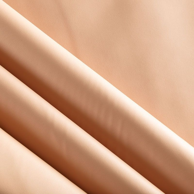 Искусственный материал, имитирующий натуральную кожу, на светлой трикотажной основе. Экокожа тоньше натуральной, не мнется, пластична, хорошо тянется за счет эластана в составе, облегает фигуру. Подойдет для пошива куртки, костюма, платья, юбки, брюк, шорт, комбинезона, сумки, рюкзака.