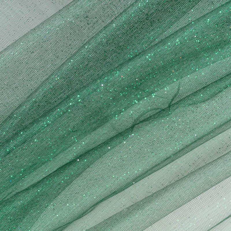 Фатин с напылением К33-955 темно-зеленый однотонный