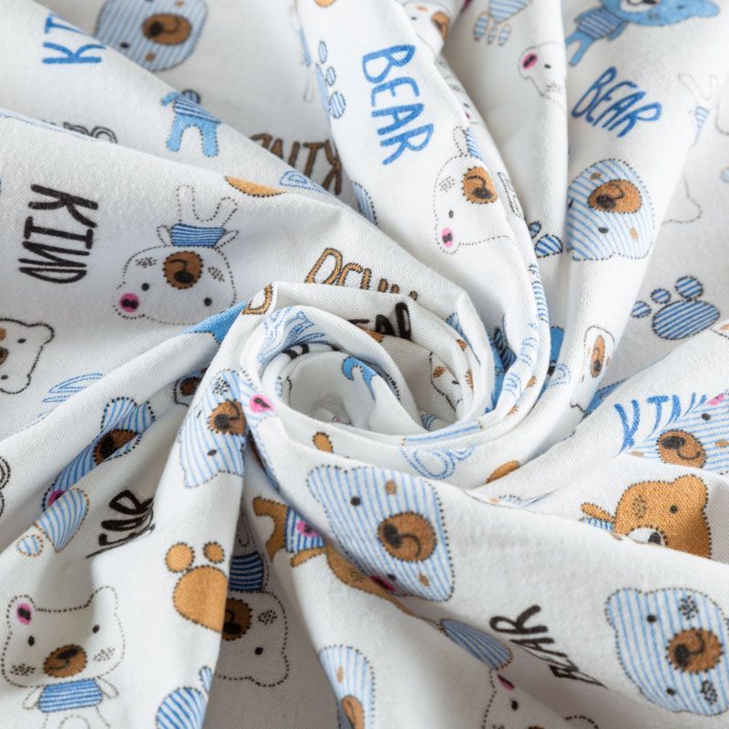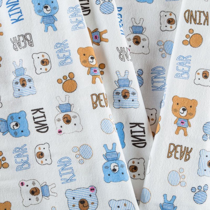 Износостойкий мягкий материал, не раздражает кожу, не садится, отлично впитывает влагу и хорошо удерживает тепло. На лицевой стороне мягкий ворс. Милый детский принт в виде рисованных тропических животных на белом фоне прекрасно подойдет для пошива постельного белья, изготовления пеленок, бортиков для кроватки, домашней одежды, пижамы и других предметов интерьера.