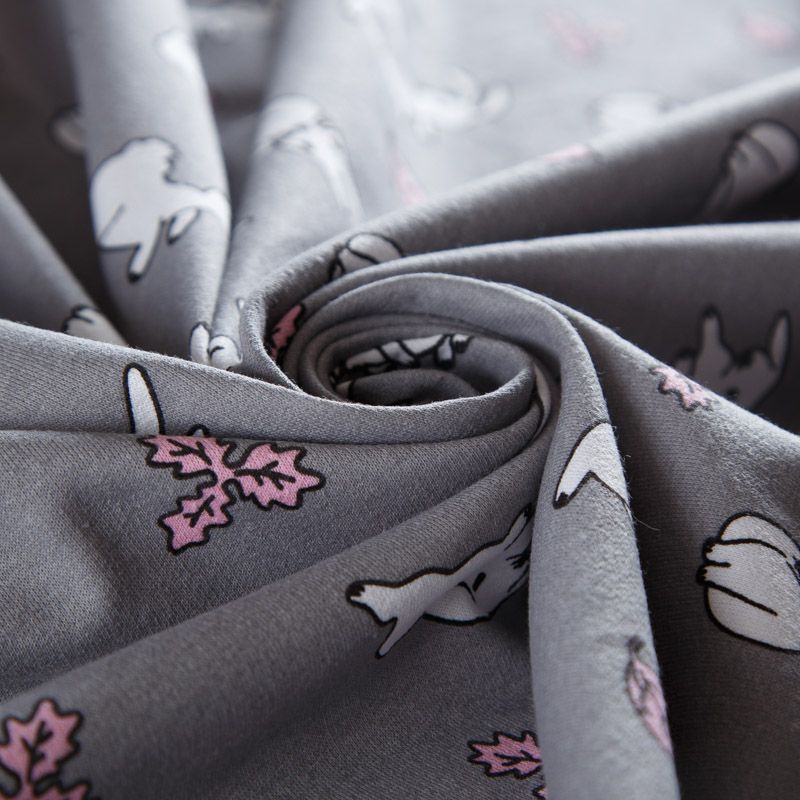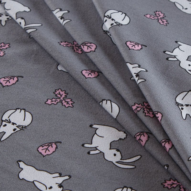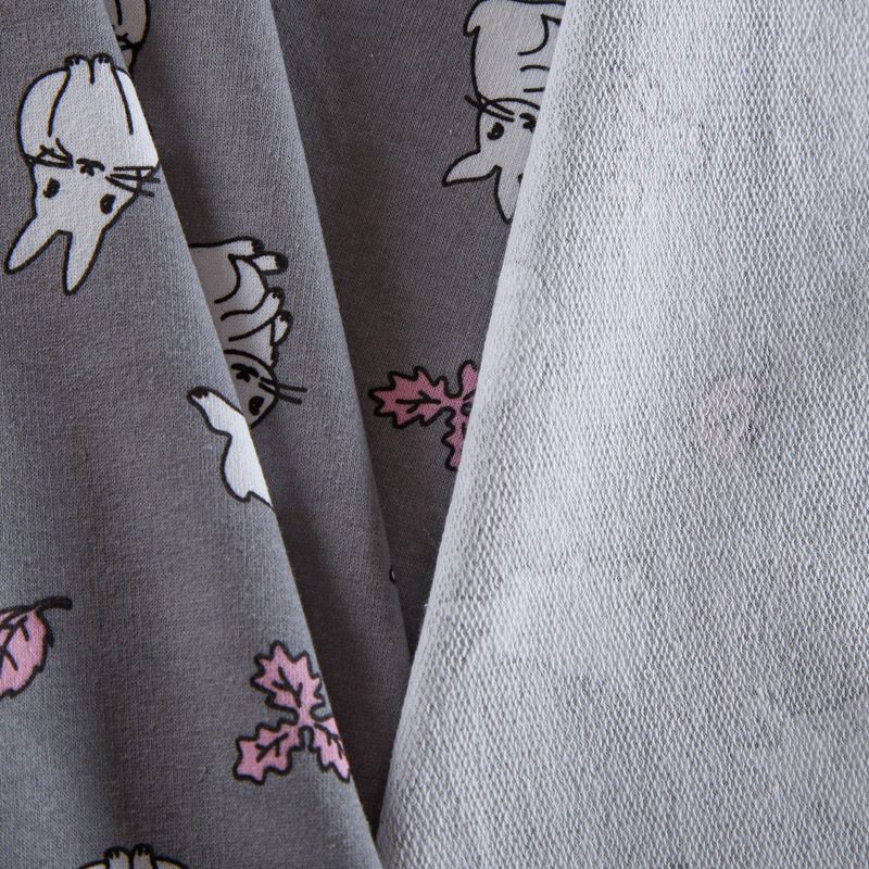 Итальянский хлопковый мягкий эластичный трикотаж средней плотности. Лицевая сторона гладкая, без блеска, мелкой вязки с детским принтом. Изнанка – с небольшим однородным ворсом или петля. Прекрасный вариант для пошива платьев и костюмов, легких толстовок, свитшотов, спортивной, детской и  домашней одежды.