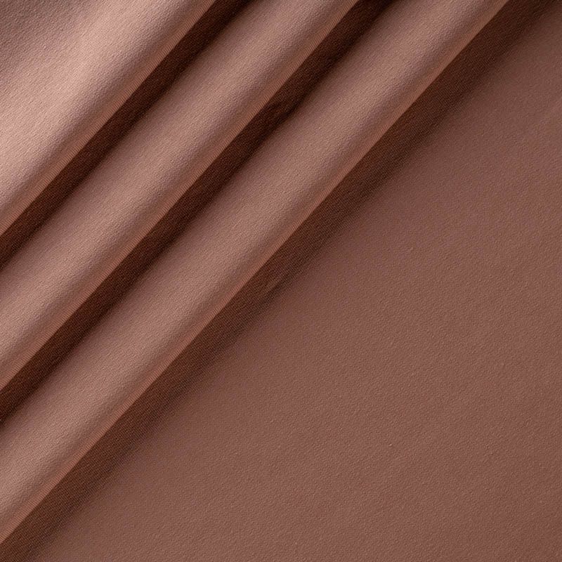 Трикотажное полотно средней плотности и пластичности. Лицевая сторона гладкая, изнанка с петельчатой структурой. На ощупь материал очень мягкий, приятный к телу. Прекрасный вариант для пошива спортивных костюмов, свитшотов, кардигана, платья, топа или жакета.