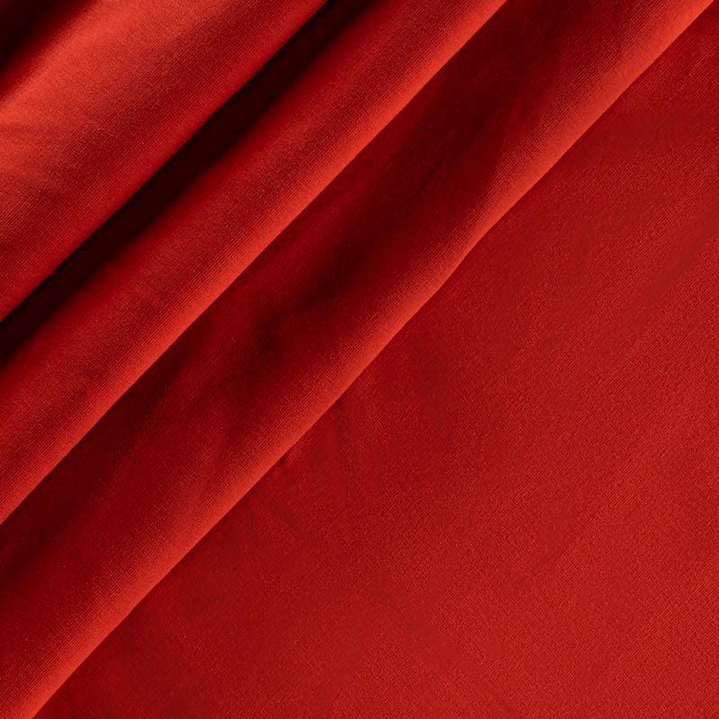 Плотный, но мягкий эластичный трикотаж. Лицевая сторона гладкая, без блеска, мелкой вязки. Изнанка – с небольшим однородным ворсом или петля. Прекрасный вариант для пошива платьев и костюмов, легких толстовок, свитшотов, спортивной, детской и  домашней одежды.
