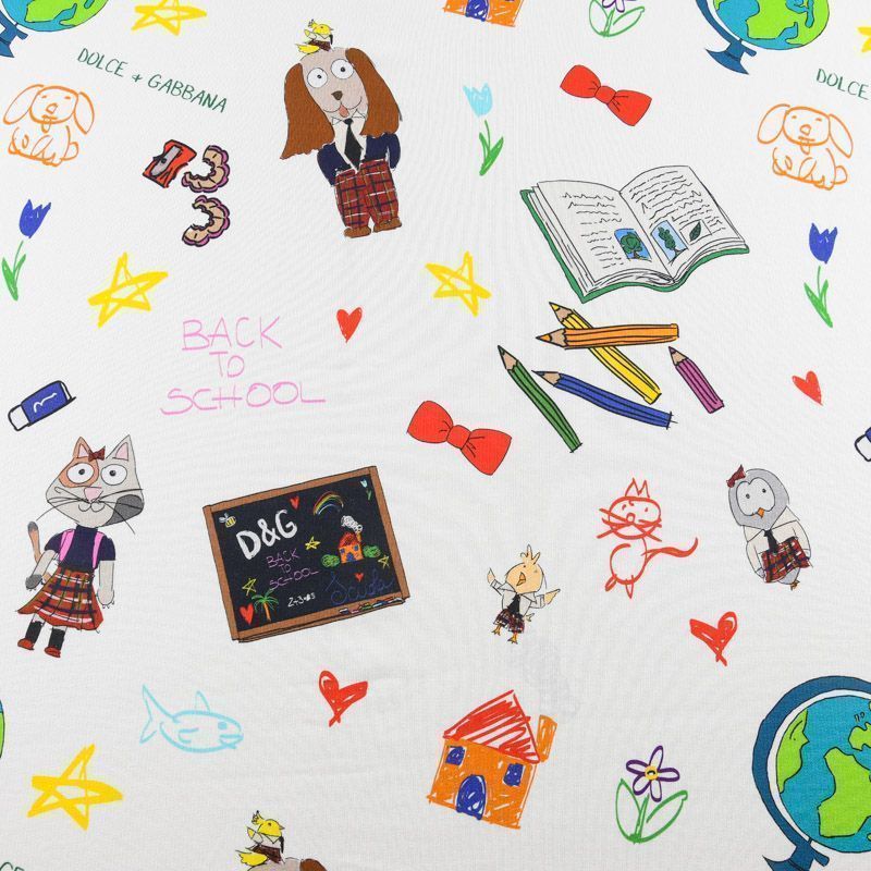 Итальянский футер с ярким игривым принтом на белом фоне от известного бренда. Материал гладкий с лицевой стороны, с изнаночной стороны имеет нежную мелкую петельчатую текстуру. Ткань мягкая и комфортная, достаточно эластичная, пластичная. Хорошо садится по фигуре. Практически не мнется. После растяжения быстро возвращается к прежней форме. Подойдет для пошива толстовки, спортивного костюма, джоггеров, шорт, свитшота, кроп-топа, платья в спортивном стиле.