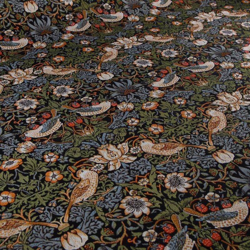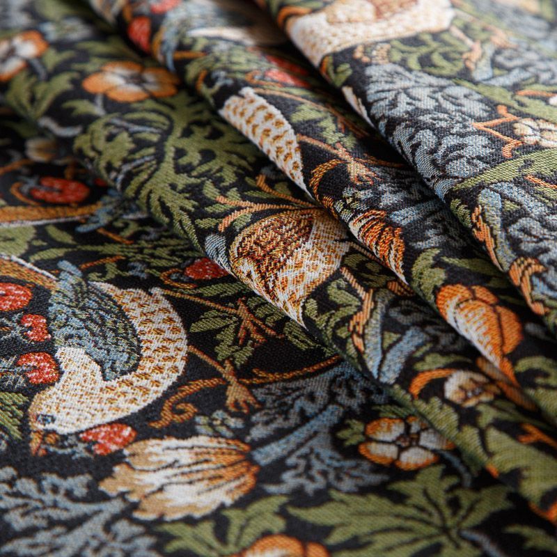 Гобелен из эксклюзивной коллекции Уильяма Морриса Земляничный вор - это классический и наверно самый узнаваемый сегодня принт, он был создан в 1883 году и стал настоящим символом английского интерьера. Земляника символизируется с крепкими и чистыми чувствами и в древнем мире считалась хранительницей всего живого. Изделия с таким принтом прекрасно украсят интерьер дома. Ткань хорошо подходит для обивки мебели, изготовления домашнего текстиля, штор, декоративных подушек, покрывал, текстильных настенных панно, абажуров, а также для пошива одежды и аксессуаров.