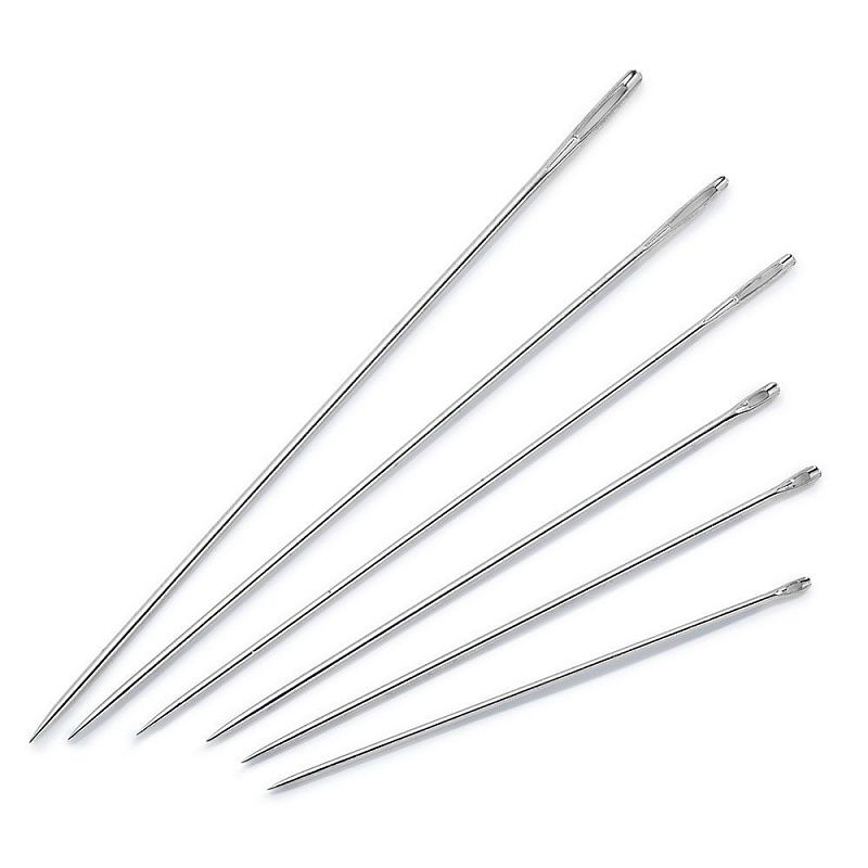 Этот набор игл содержит 12 швейных игл и игл для штопки в ассортименте для повседневного использования в быту. Каждая игла изготовлена из защищенной от ржавчины, закаленной стали. В известной комбинации из удобной для пальцев головки, ушка без грата, равномерно отполированной поверхности и благодаря узкому, сужающемуся острию она может идеально проводиться через все ткани. Сбалансированная пружинная твердость позволяет приятную работу и предотвращает изгибание или поломку тончайших игл. Тем самым этот набор игл выполняет требования для всех возникающих в быту работ по шитью и штопке.