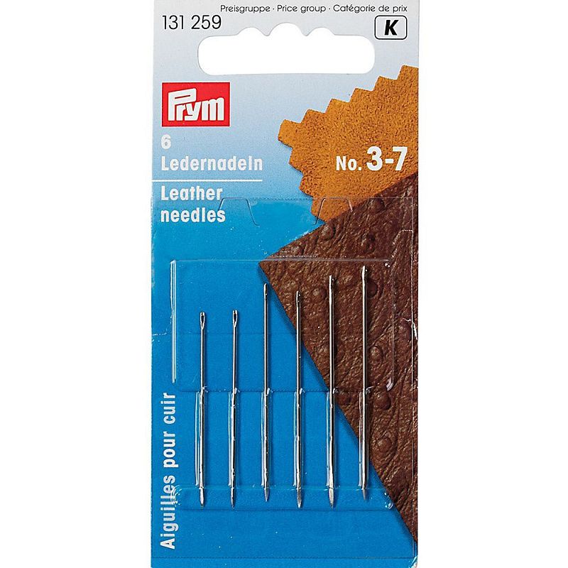 Для обработки кожаных изделий лучше всего подойдут иглы для кожи из закаленной стали.  Иглы с их трехгранным кончиком облегчают прокалывание кожи, а также предотвращают ее разрыв. Скорняжные иглы или иглы для обработки кожи представлены наборами в закрывающихся упаковках по 6 штук.