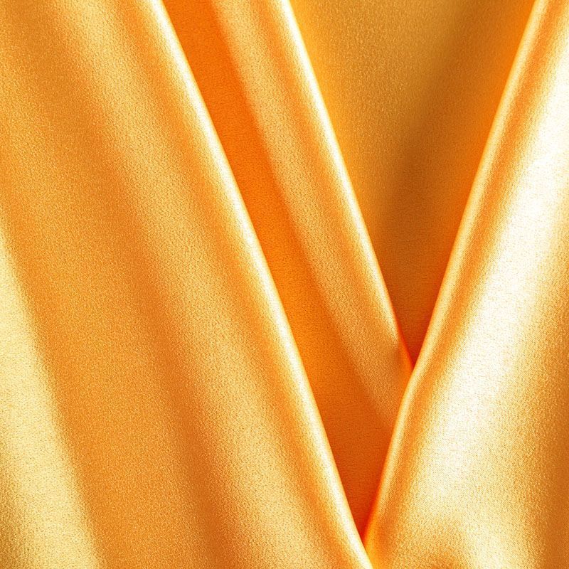Итальянская ткань кади темно-желтого оттенка. Кади — это креп-атлас с красивым глянцевым блеском. Ткань с плотной фактурой, роскошно ниспадает, очень хорошо тянется, изумительно садится по фигуре и шикарно смотрится в изделии. Она хорошо драпируется, эффектно облегает. Подходит для пошива удлиненных платьев с драпировками, платья-футляра, брюк палаццо, юбки-карандаш, жакета, туники, кроп-топа, а также для вечерних, свадебных и выпускных платьев и костюмов.