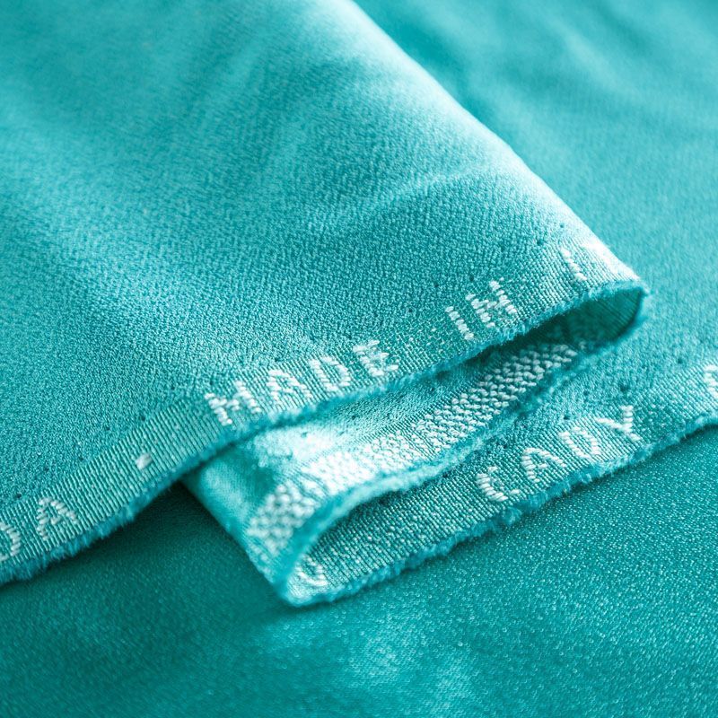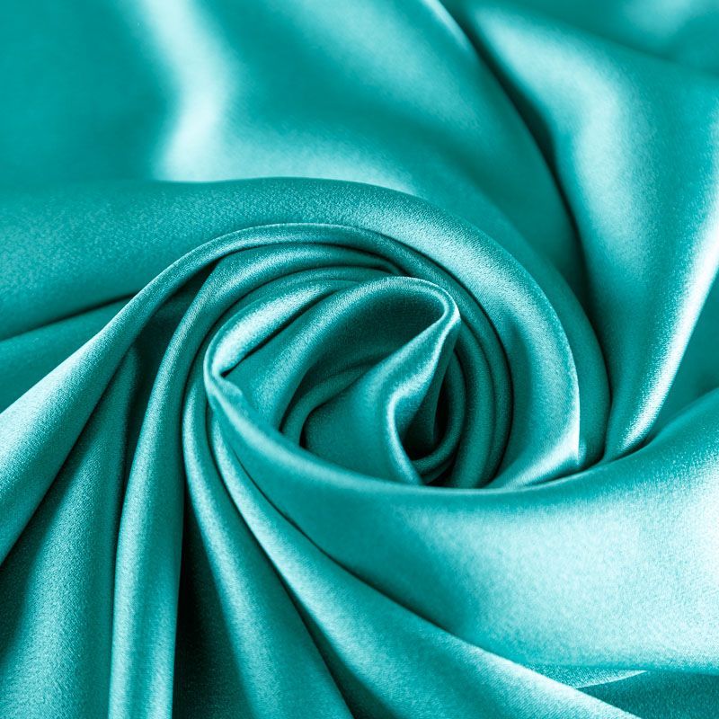Итальянская ткань кади зеленого оттенка. Кади — это креп-атлас с красивым глянцевым блеском. Ткань с плотной фактурой, роскошно ниспадает, очень хорошо тянется, изумительно садится по фигуре и шикарно смотрится в изделии. Она хорошо драпируется, эффектно облегает. Подходит для пошива удлиненных платьев с драпировками, платья-футляра, брюк палаццо, юбки-карандаш, жакета, туники, кроп-топа, а также для вечерних, свадебных и выпускных платьев и костюмов.