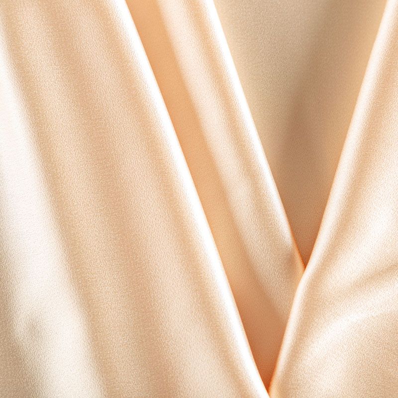 Итальянская ткань кади золотистого оттенка. Кади — это креп-атлас с красивым глянцевым блеском. Ткань с плотной фактурой, роскошно ниспадает, очень хорошо тянется, изумительно садится по фигуре и шикарно смотрится в изделии. Она хорошо драпируется, эффектно облегает. Подходит для пошива удлиненных платьев с драпировками, платья-футляра, брюк палаццо, юбки-карандаш, жакета, туники, кроп-топа, а также для вечерних, свадебных и  выпускных платьев и костюмов.