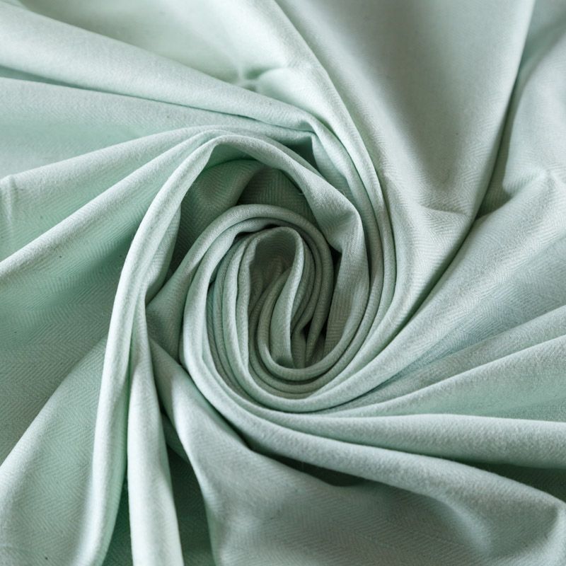 Итальянский пальтовый кашемир в ментоловом оттенке. Ткань мягкая, пластичная, приятная на ощупь, гибкая, средней толщины, средней плотности. Поверхность фактурная в "елочку", имеет короткий ворс. Подойдет для пошива пальто, куртки, жакета, парки, кейпа, жакета или пончо.