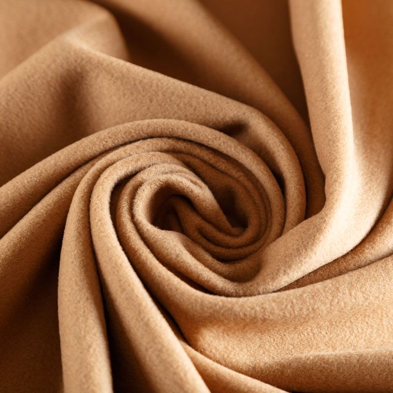 Итальянский пальтовый кашемир благородного золотисто-карамельного оттенка. Ткань мягкая, пластичная, приятная на ощупь, гибкая, средней толщины, при этом высокой плотности. Поверхность имеет короткий ворс. Подойдет для пошива пальто, куртки, жакета, парки, кейпа, жакета или пончо.