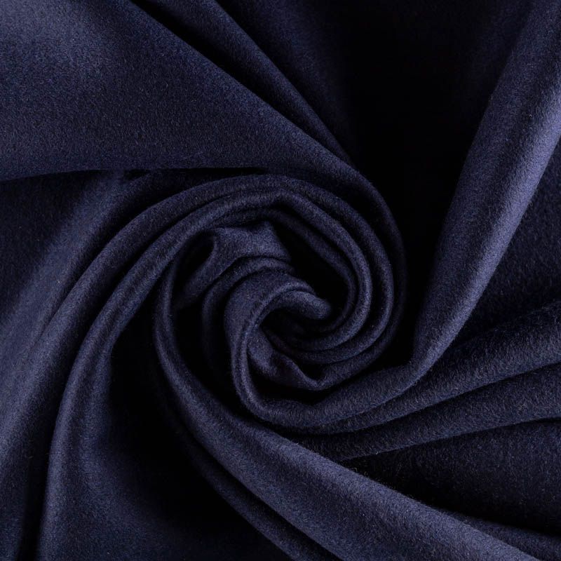 Пальтовый 2-х сторонний кашемир темно-синего оттенка. Вторая сторона черного цвета. Ткань необычайно мягкая, приятная на ощупь, гибкая, средней толщины. Поверхность имеет короткий ворс. Подойдет для пошива пальто, куртки, жакета, парки, кейпа, жакета или пончо.