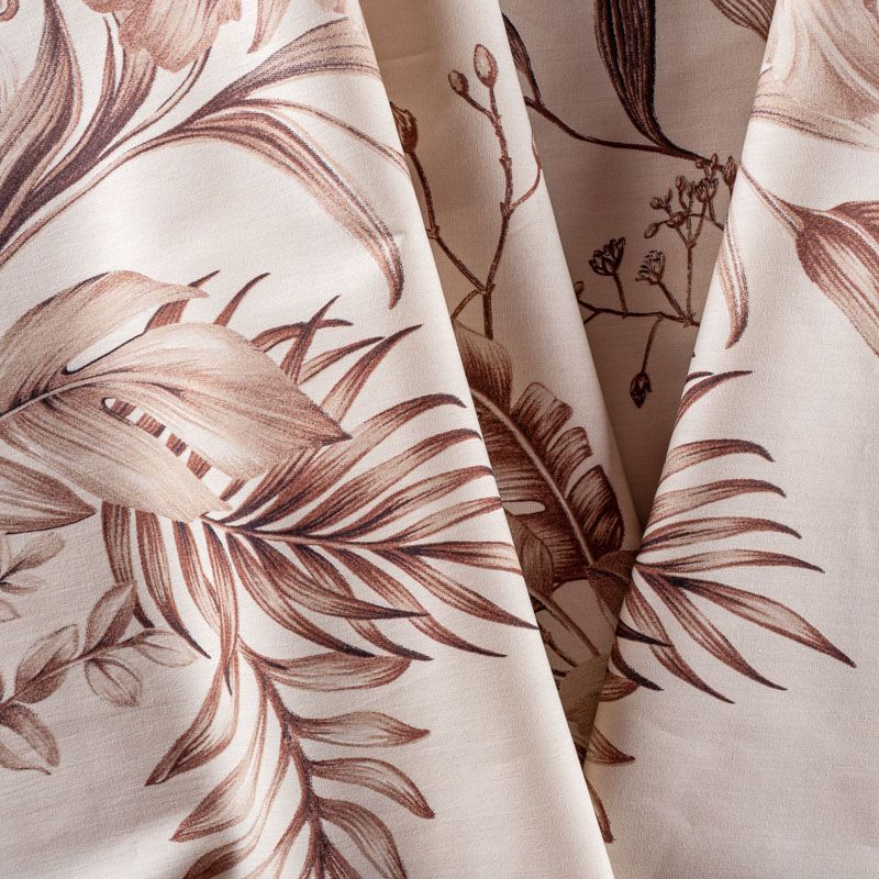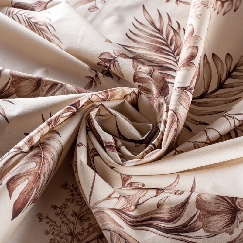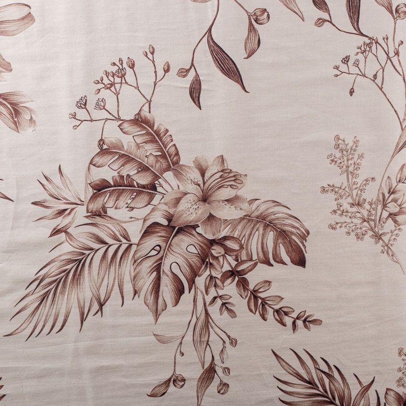 Плательно-рубашечный натуральный хлопок выполнен в монохромной бежево-коричневой гамме с крупным растительным рисунком. Ткань имеет плотное переплетение, матовую гладкую поверхность, хорошо держит форму, не прозрачная. Подойдет для пошива рубашек, платья-рубашки, юбки, сарафана, туники, домашней одежды.