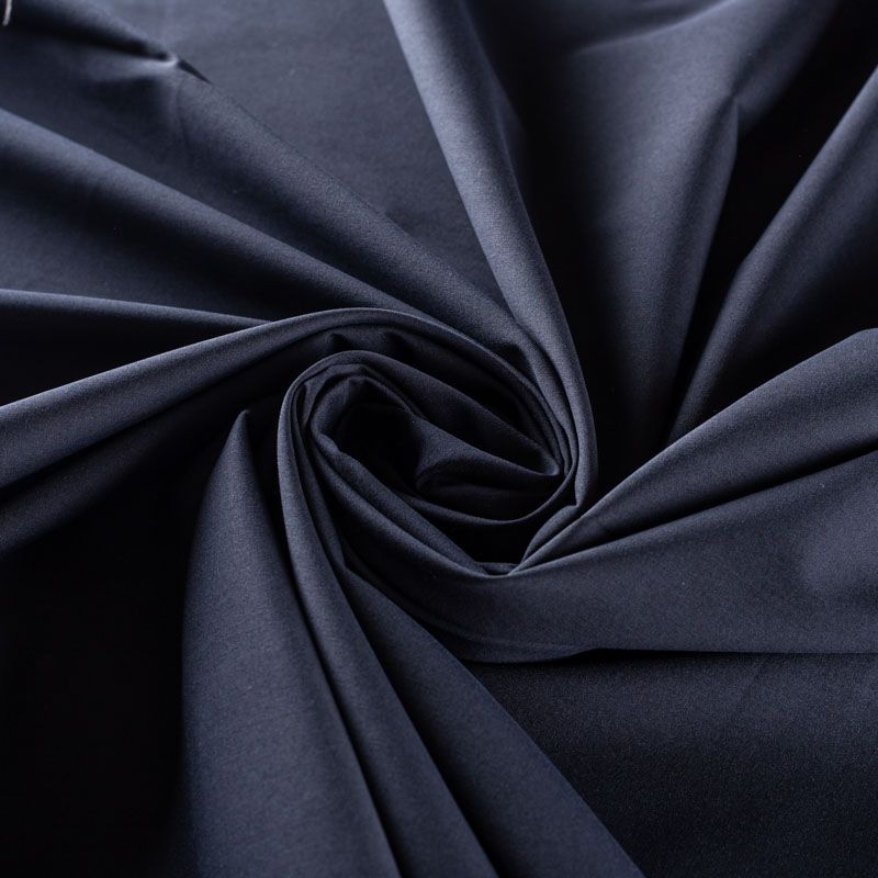 Итальянский плательно-рубашечный хлопок черного цвета. Ткань лёгкая, непрозрачная, поверхность матовая, гладкая, приятная к телу, хорошо драпируется, тянется за счет эластана в составе. Прекрасно подойдет блузы, платья-рубашки, летнего сарафана, туники.