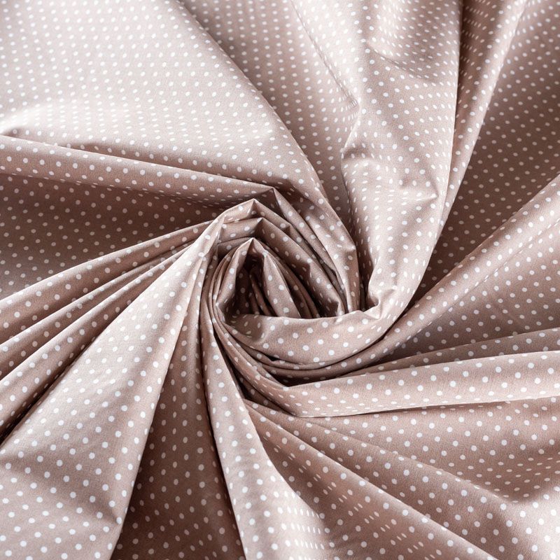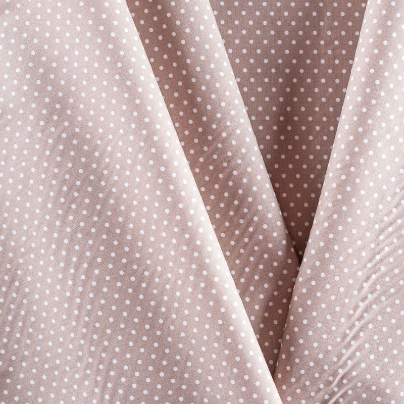 Плательно-блузочная ткань из натурального хлопка в мелкий горошек. Ткань легкая, тонкая, хорошо "дышит", мягкая, не прозрачная, немного тянется за счет эластана в составе. Подойдет для пошива летнего платья, летящей юбки, блузы, сарафана, комбинезона или рубашки.